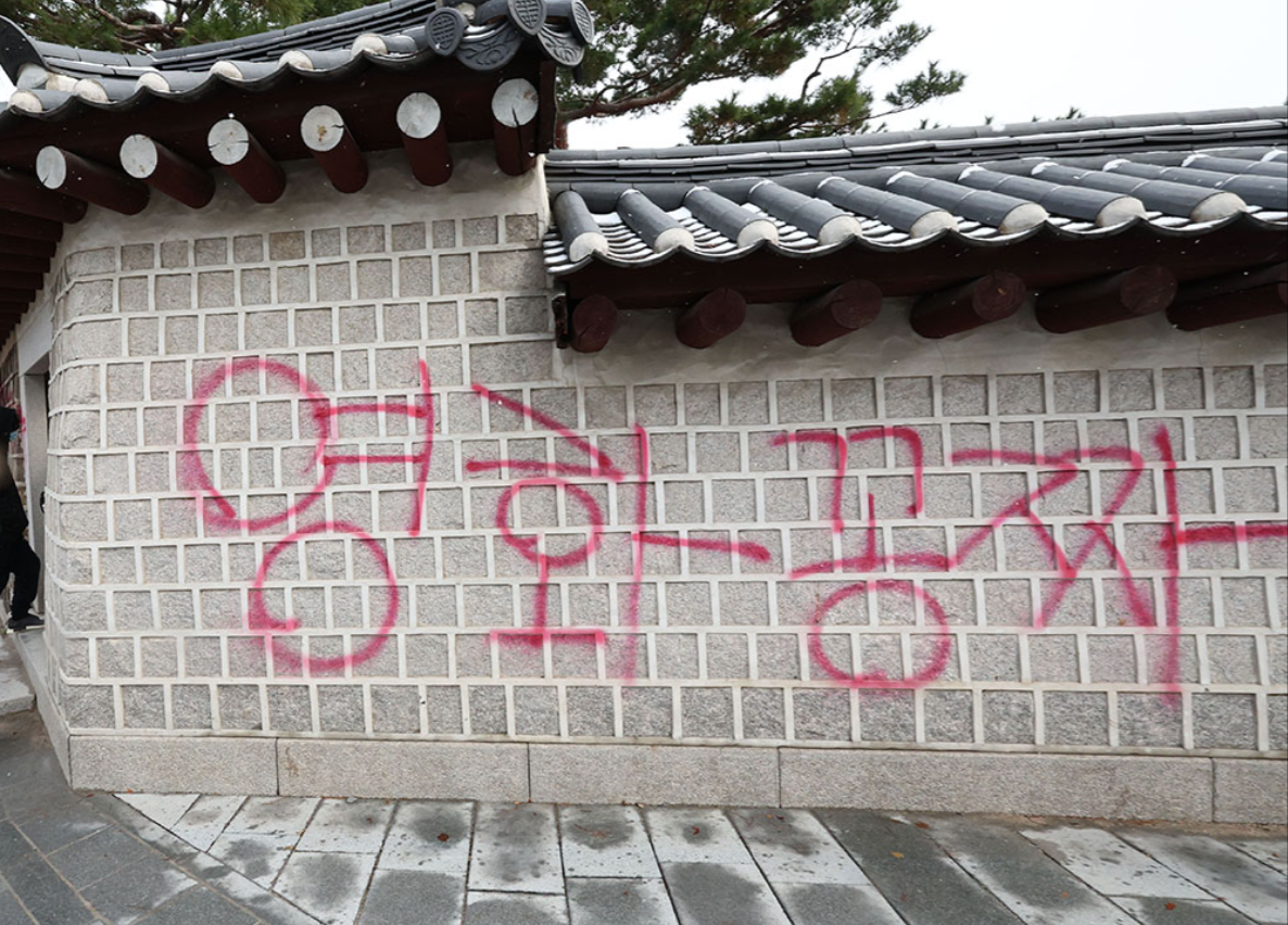 한국에서 가장 상징적이고 역사적으로 중요한 경복궁을 훼손시키는 사건이 발생했습니다.